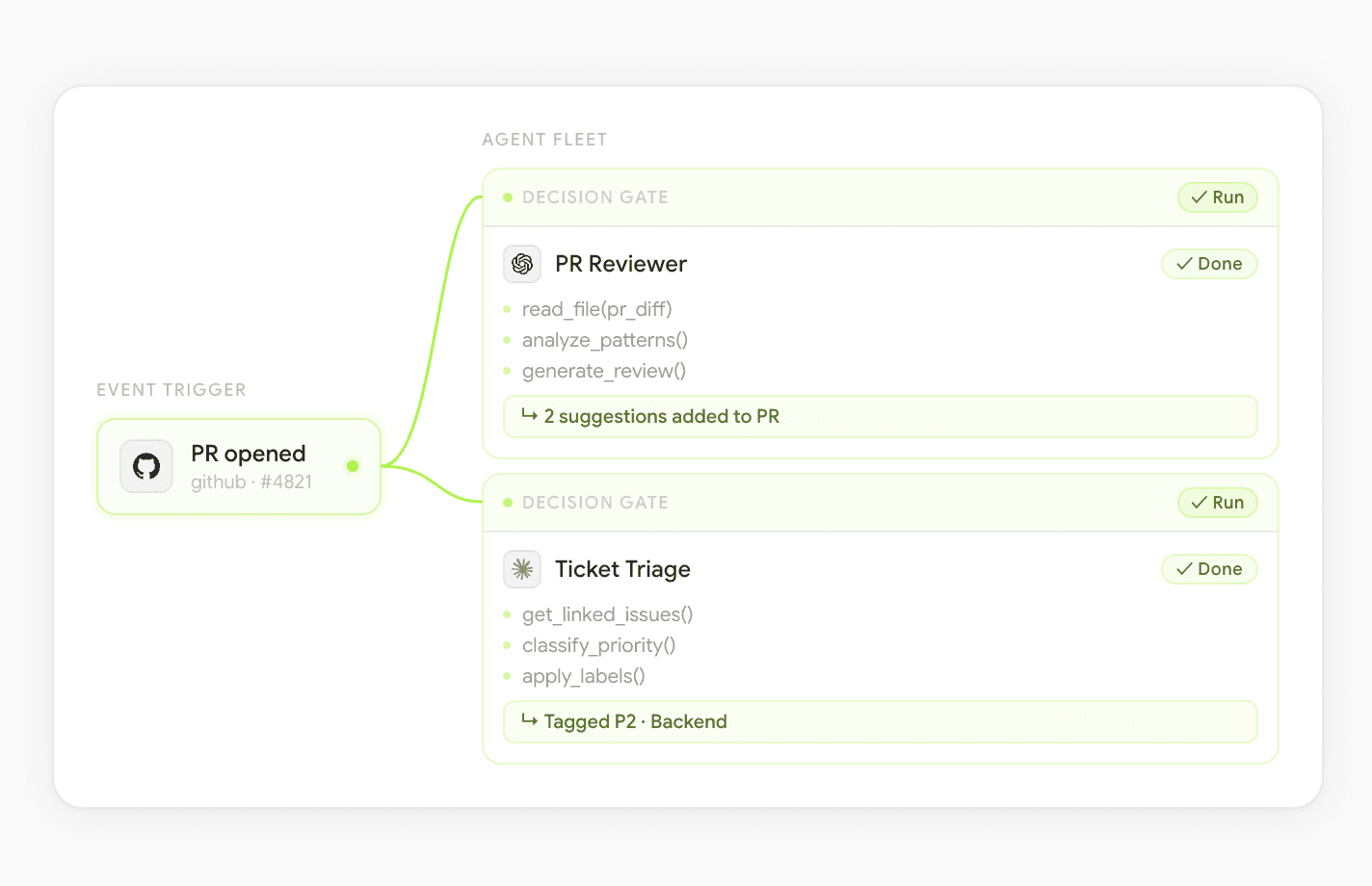 Any business event can trigger agents that need to be aware, efficient, scalable, and permissioned.